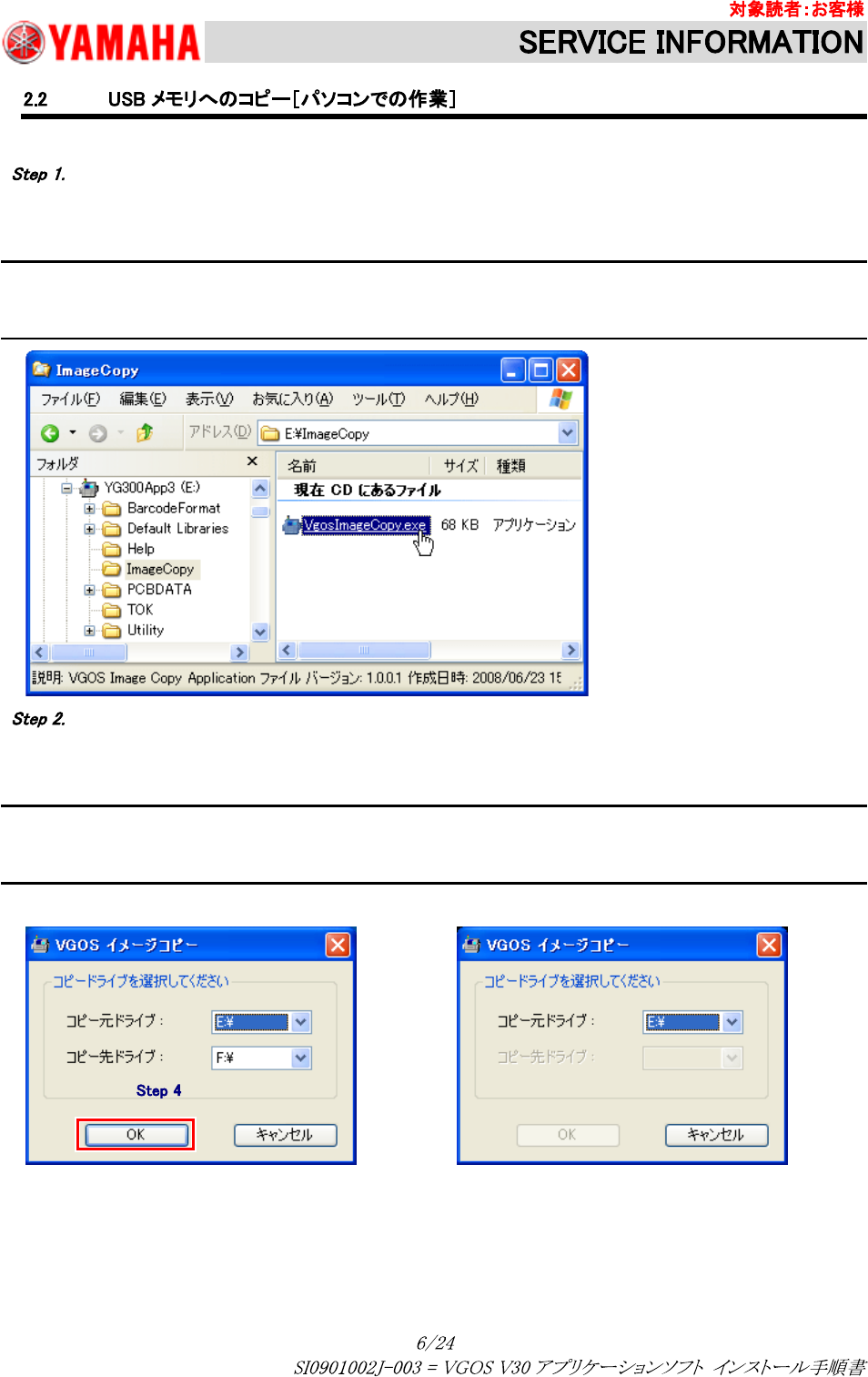 以下手順に従い、イメージコピー用のソフトを使うことにより自動で USB メモリにイメージがコピーされます。