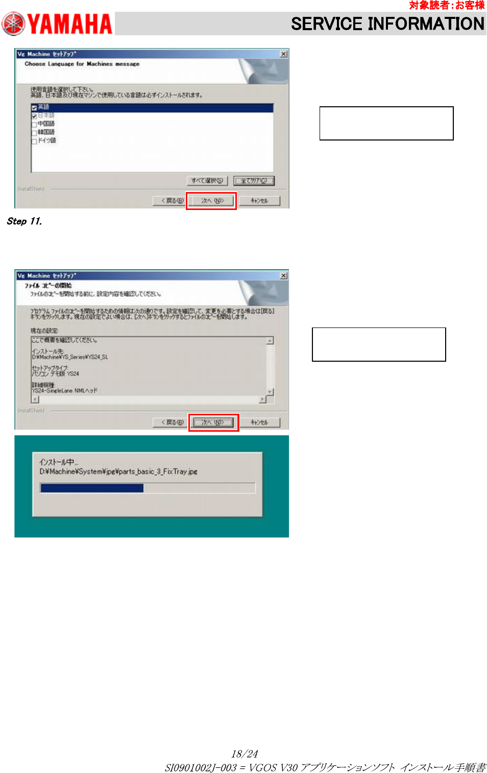 お客様にてヤマハ標準設定を変更して使用している等で上書きしたくない場合は、チェックを外して [次へ(N)>]ボタンを押し
