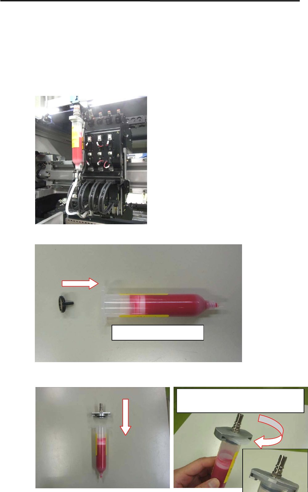 6 . Additional Function 15 Placement of Dispense Head Follow the instructions below and place the dispense head. Insert the fluid shortage det ection magnet ASSY to the plunger inside the sy ringe. Place the syringe hold…