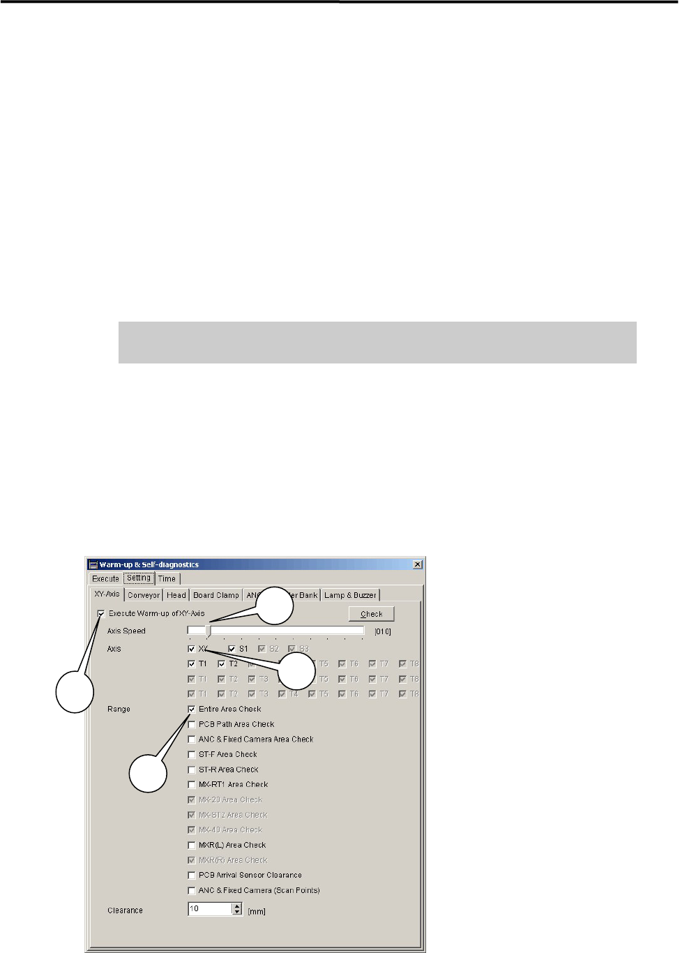 1: Check “Execute Warm-up of XY-axes”.