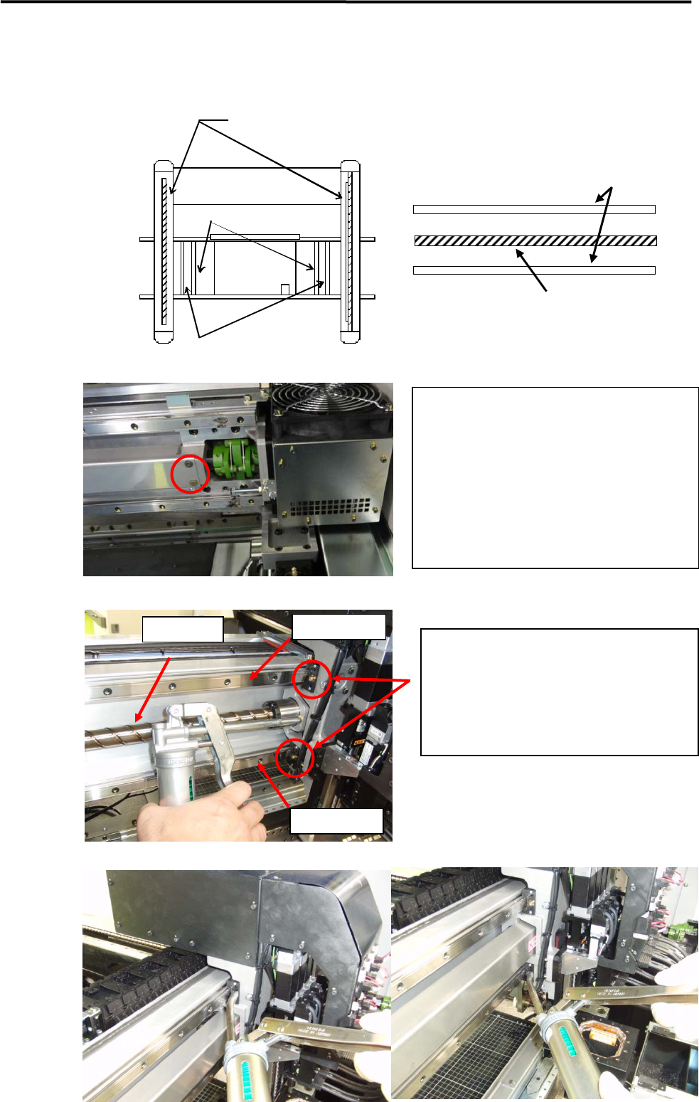 3 Mechanical Section 3-20 Y Axis Ball Screw Y 軸ボールネジカバーを外す場合。 Removing t he Y Axis Ball Screw Cover Pl ate Y軸リニアガイド Y Axis Linear Guide Unscrew the bolts on both sides and rem ove the ball screw cover plate Move the X ax…