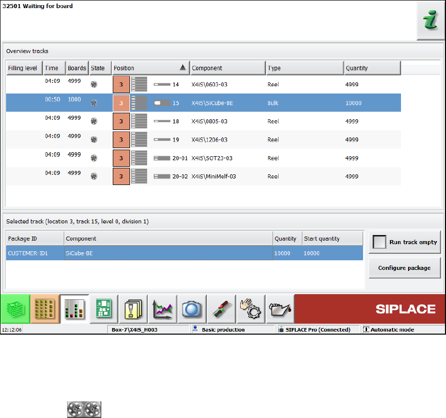 In this view, information on the current filling level, component, type, quantity etc. is displayed.
