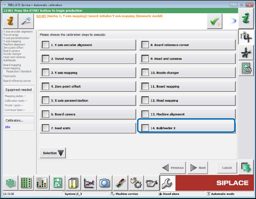 SIPLACE BulkFeede r X / Operating Ma nual 05/2017 Edition 30 Figure 5-1: Starting automatic cal ibration