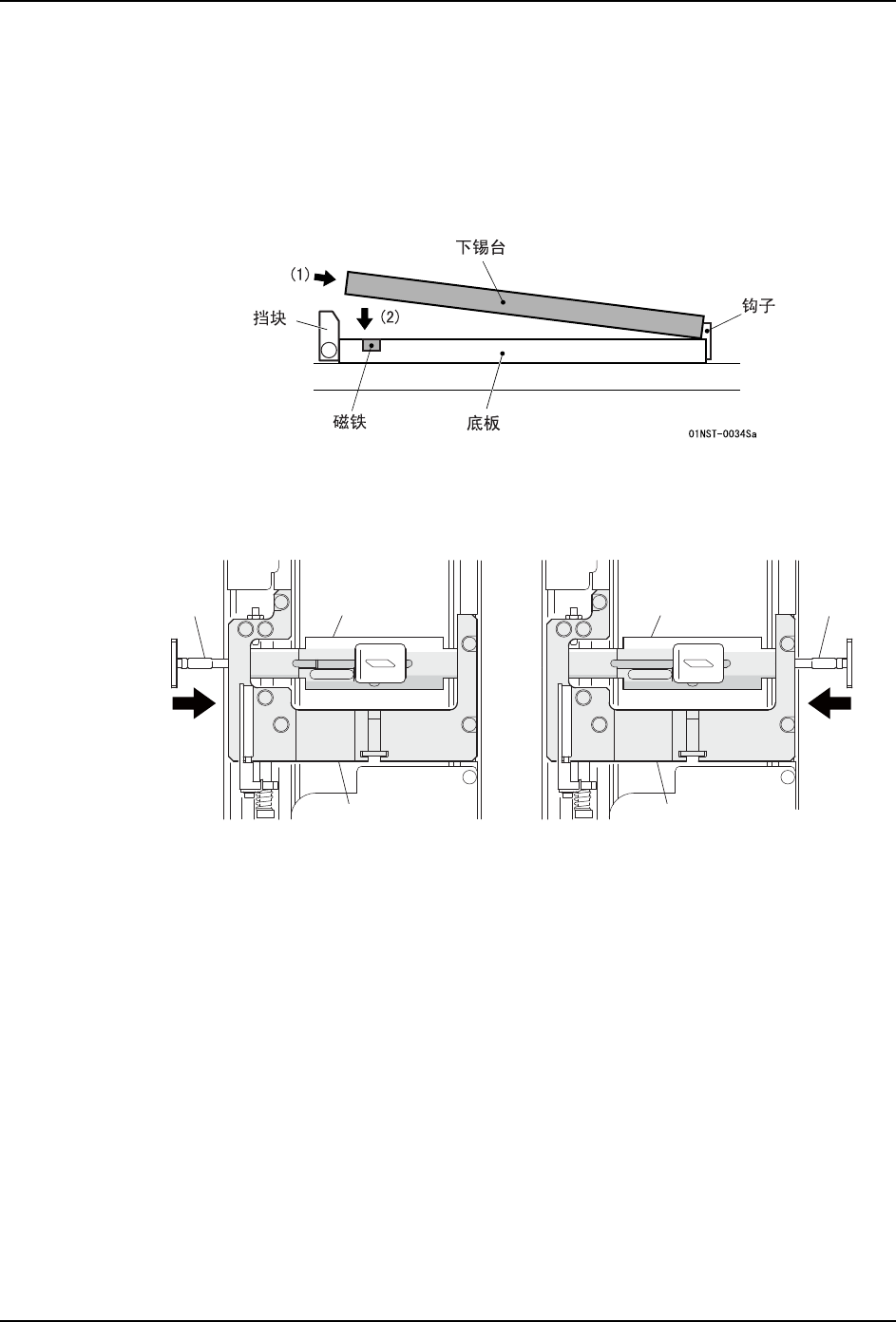 注意 )在将下锡台安装到底板上的时候,请注意不要夹入异物。