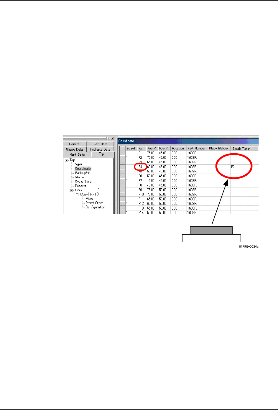 在 Job 的 Coordinate 中,对于要进行 Package-on-Package 贴装的元件,请进行以下的设定。