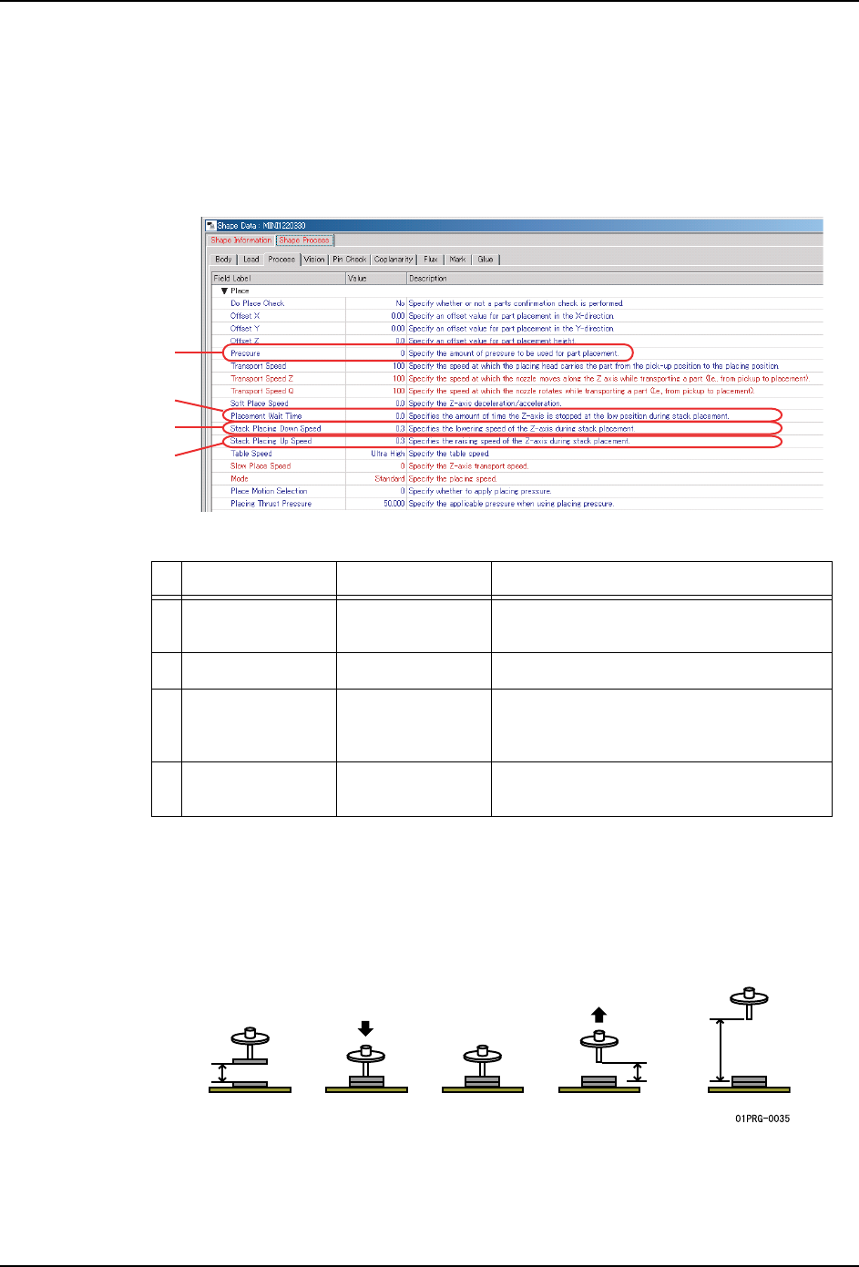3. 指定贴装上方元件的工作头的压力、下降速度、下降端时间和上升速度等。