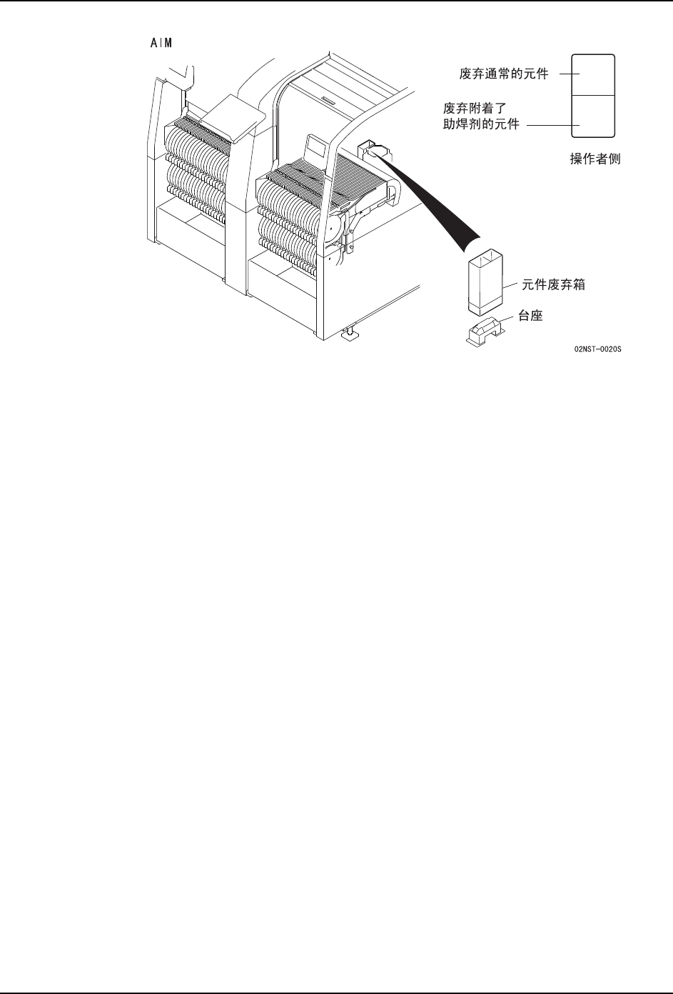 6. 生产 QD114-07 30 桥式浸渍助焊剂单元使用说明书 备注 ) 1.如果将元件的废弃处指定为 [Conveyor] 或 [Pickup Tray] 时,元件排出轨道或料盘 有可能附着助焊剂。 2.在安装元件废弃箱时, 请完全插入到台座上。 如果元件废弃箱没有被完成插入, 运转 时有可能与工作头发生碰撞。
