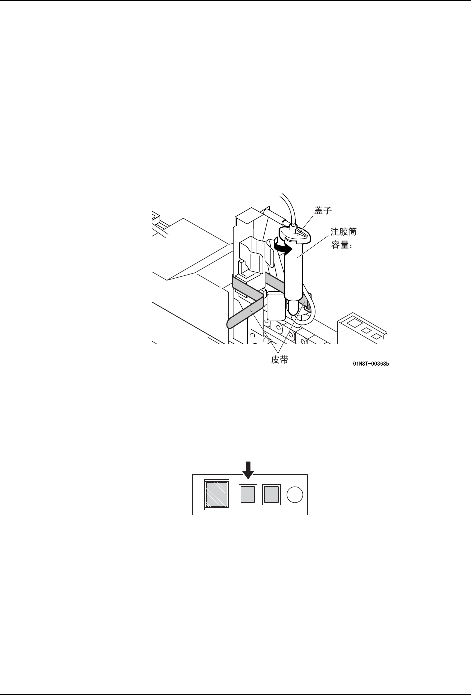1. 按照前节 [ 在运转前准备中自动供应助焊剂 ] 的相同步骤,将助焊剂充填到注胶筒内。