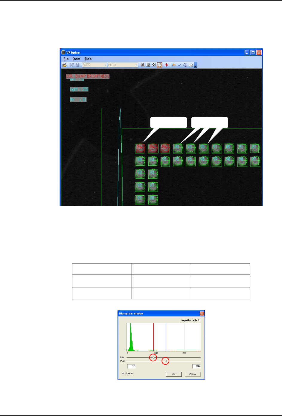 16.如果影像处理结果为错误,请点击 〈No〉。在显示错误内容的画面上,各锡球的平均灰