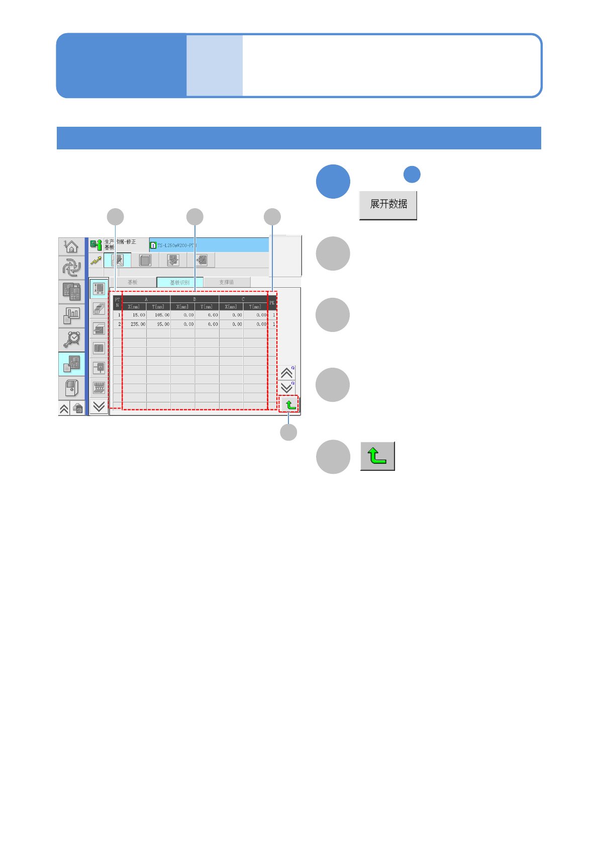 输入各识别标记的基板识别坐标 (X,Y)。