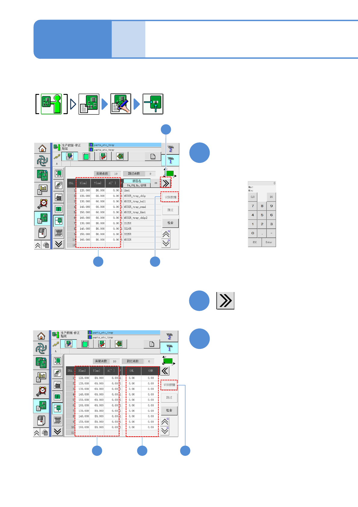 ●对修改生产数据的贴装点的画面进行说明。