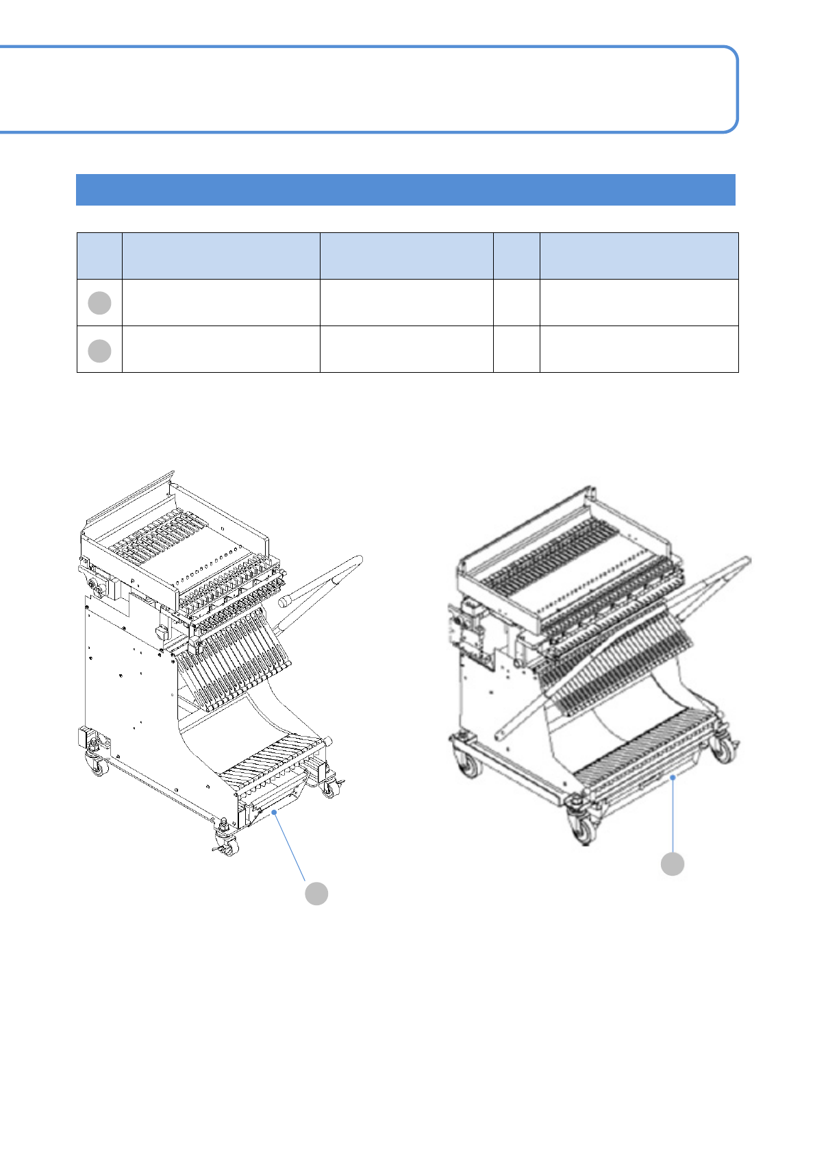 EJM9DC-MB-15E-0 0 NPM-W X/WXS 15-5 -4 No. 零部件名称 重量 ( g ) 数量 材质 空编带箱 (17 站台车 ) 550 1 PP ( 聚丙烯 ) 空编带箱 (30 站台车 ) 876 1 PP ( 聚丙烯 ) 交换台车 A A B ■ 17 站台车 ■ 30 站台车 B