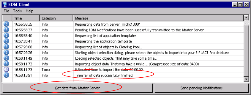 successfully finished message appears and the Get data from Master Server button is