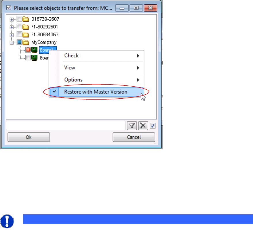 ► Click the right-hand mouse button to open the context menu and select the Restore with