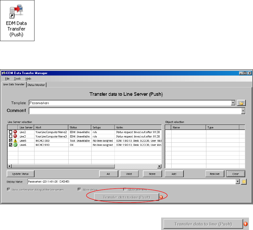 The Data Transfer Manager allows users to send defined data packages to Line Servers.