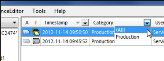 ► Select any of the available filter values or All to display all entries.
