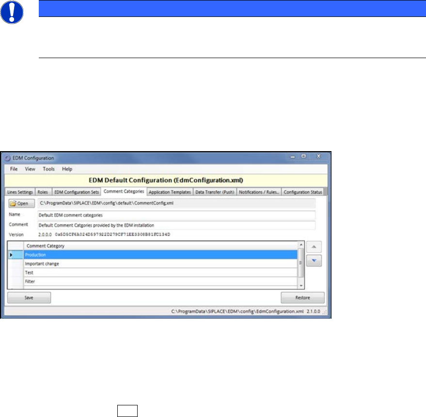 These comment categories are presented to a user on the EDM Clients in the Comment dialog