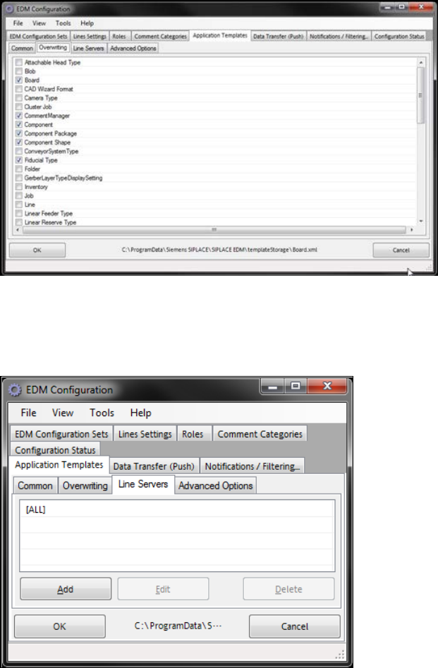EDM V2.2 / U ser Guid e Ausgabe 10/2013 E dition 50 5.1.6.2 Overw ritin g Figure 5-8 : Settings for overwriting object ty pes You can s elect the o bject t ypes to be over written when the data is im ported to the l ine …