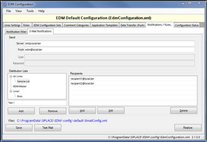 Figure 5-12: Configuration of e-mail distribution lists