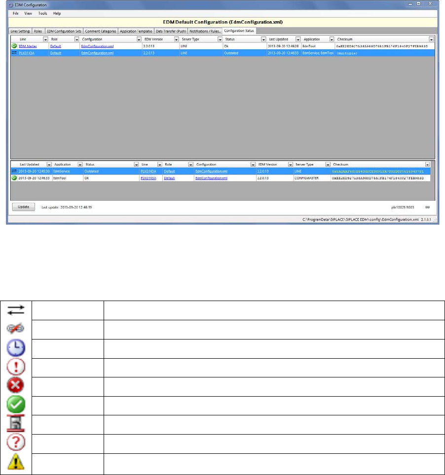 The Configuration Status tab gives some information about the status of the EDM Client