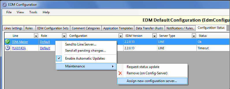 the context menu and select Assign new configuration server.