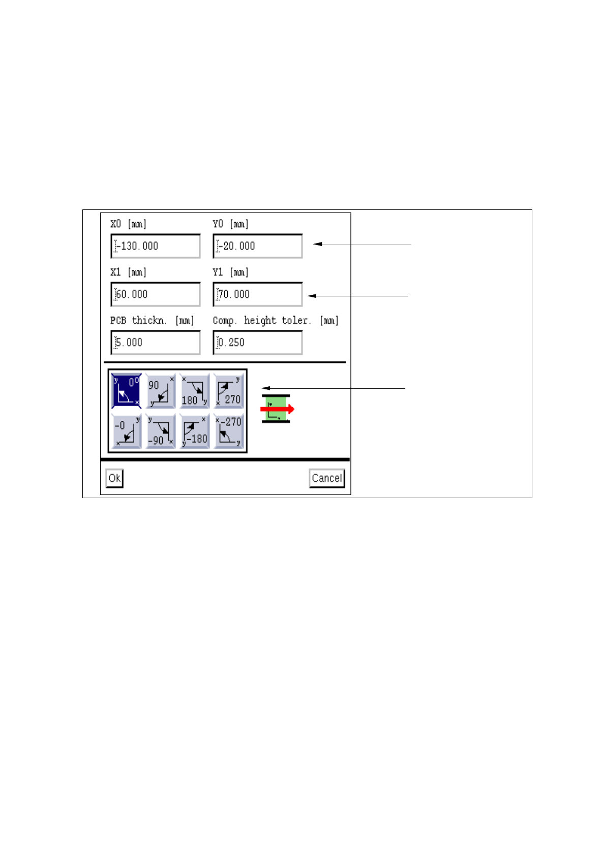 If a mirrored coordinate system is selected (- 0°, - 90°, -180° or - 270°), all angles of the placement