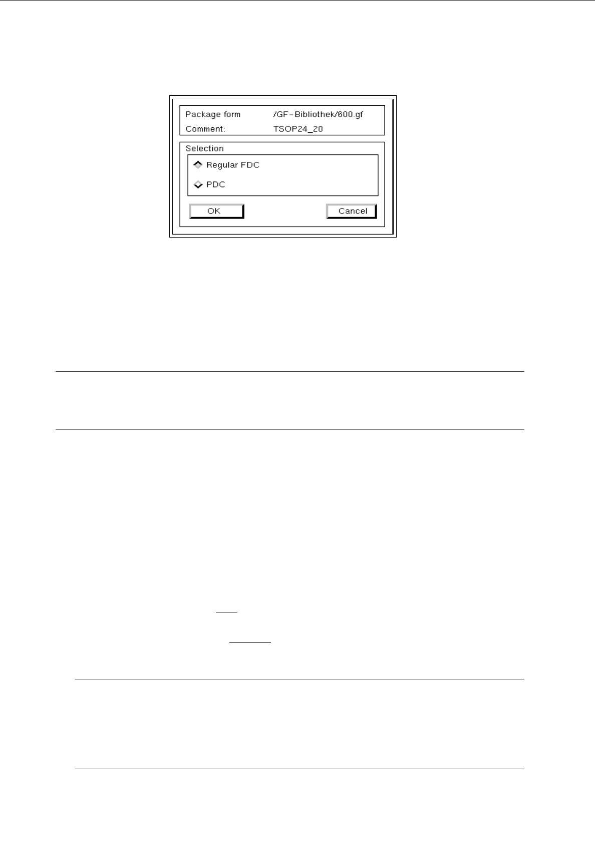 The title bar displays the directory in which the selected package form (or the GF-file) is contained, and the