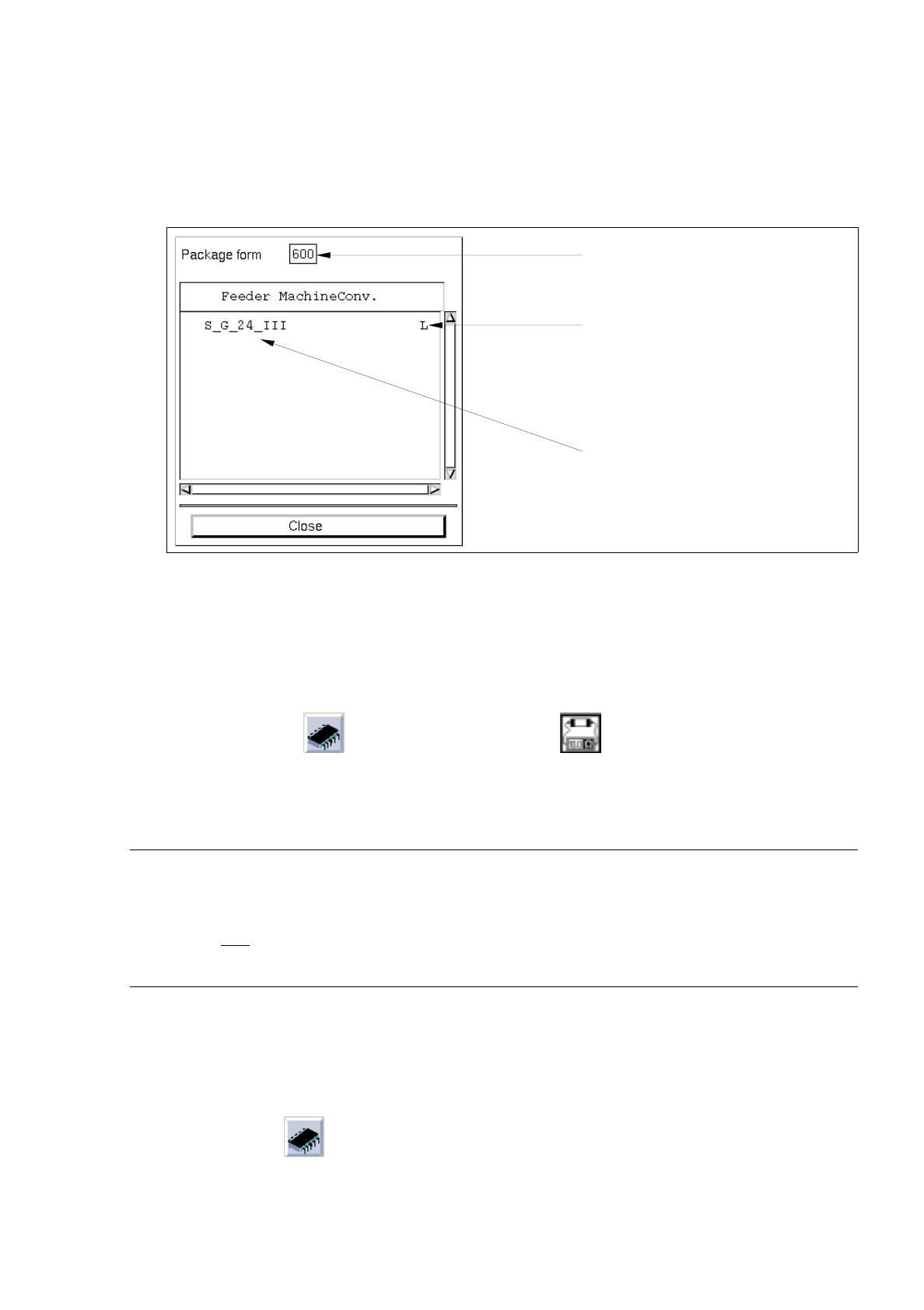 This area contains the icons (symbol for package form) and (symbol for component) by means of