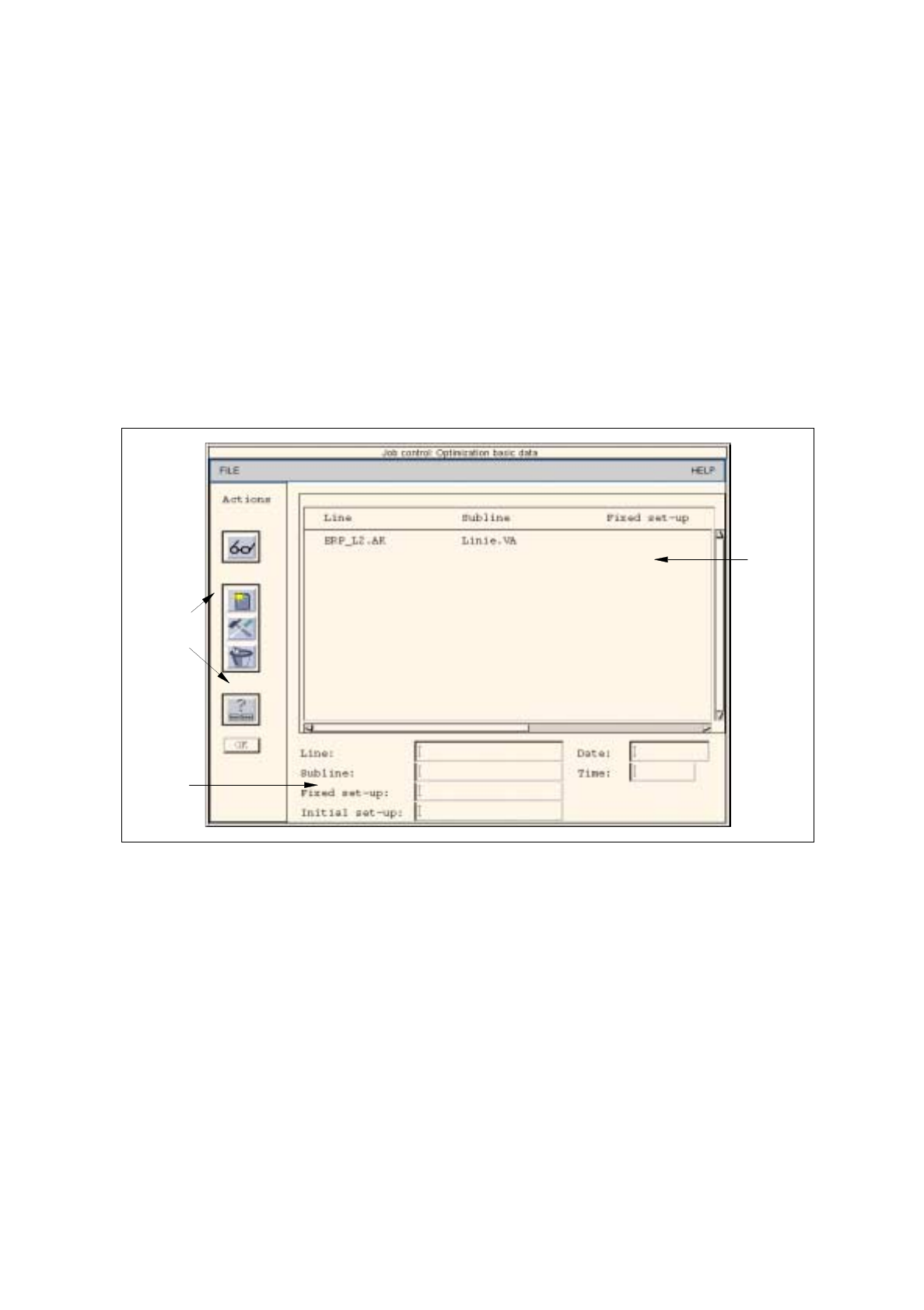 For the optimization of the setup of a lot file, basic optimization data are required. These indicate on which line