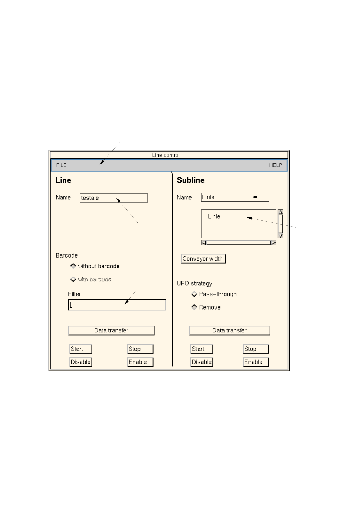 In the following, the different portions of the main window of the Line Control and their functions are explained.
