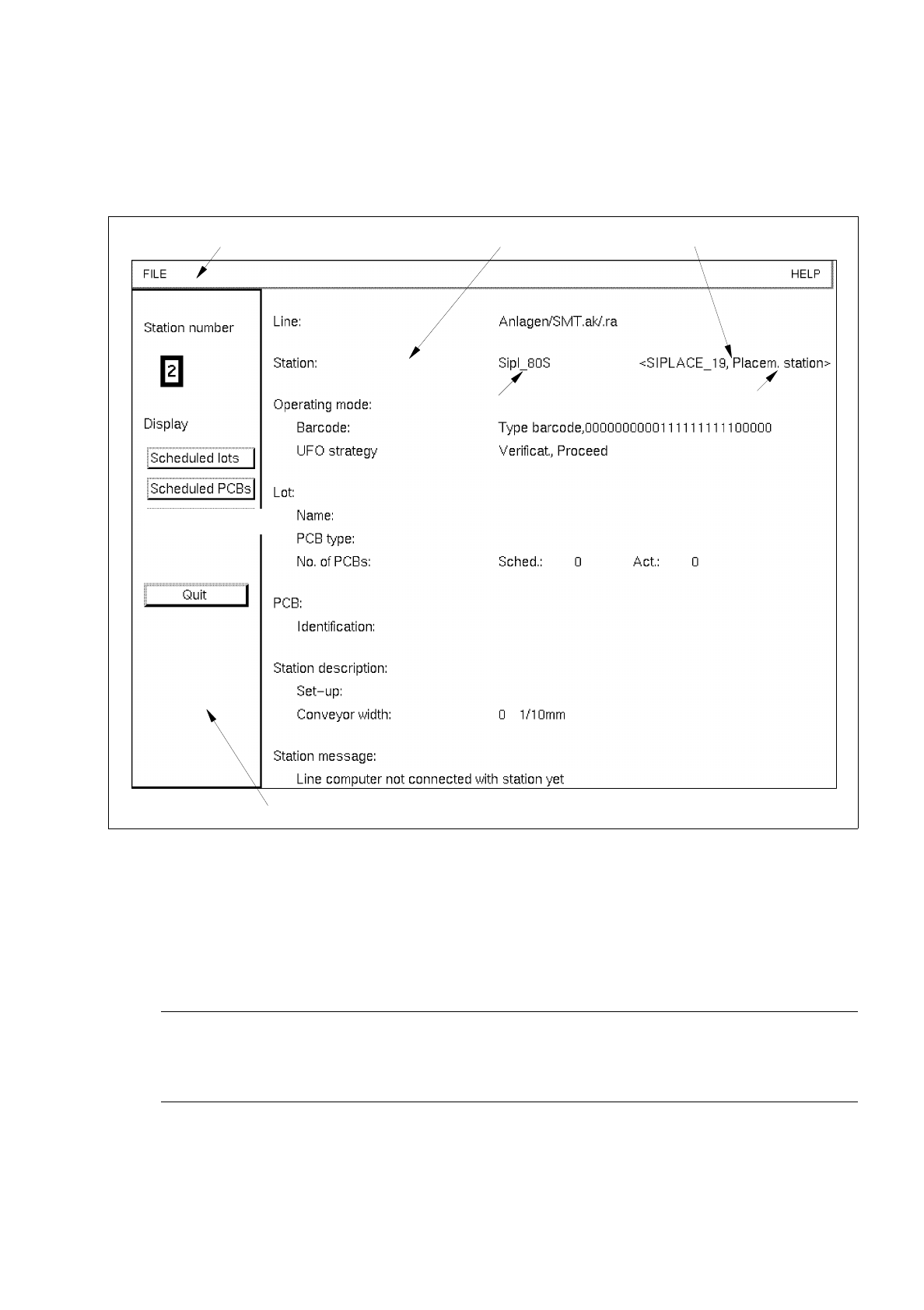 14 Control / Control Modules User’s Manual Line Computer UNIX 14.4 Station Controll ers Software Version 403.xx Edition 06/97 14 - 34 14.4.3 Opening the "Station Controller" U ser Interfac e Every plac ement st…