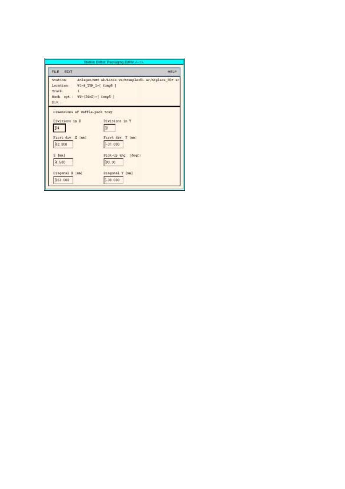 46. Enter the dimensions of the waffle-pack tray in the editing fields, see