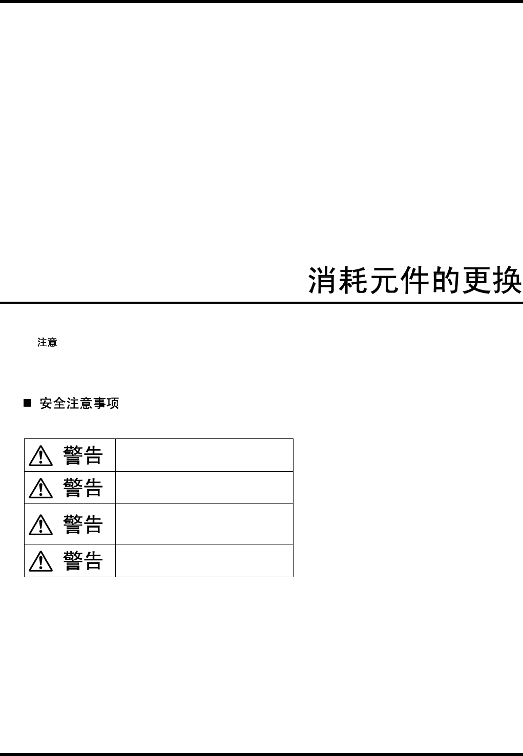 BM221 维修手 册 10. 消耗元 件的 更换 E3 3MCC-6D -001-C 0 10-2 E33M CC-6D- 001-C 0 10. 在本章 中对 消耗元件 的更 换进行了 说明 。 = = 在事先 未通 知的情况 下, 有可能会 变更 元件的型 号。 关于订 货, 请参照元 件一 览表。 请仔细 阅读 ‘ 维修手 册 / 关于安 全 ’ ,在了 解安 全方面的 注意 事项之 后进 行作业。 检修作 业前 请务必阅 读维…