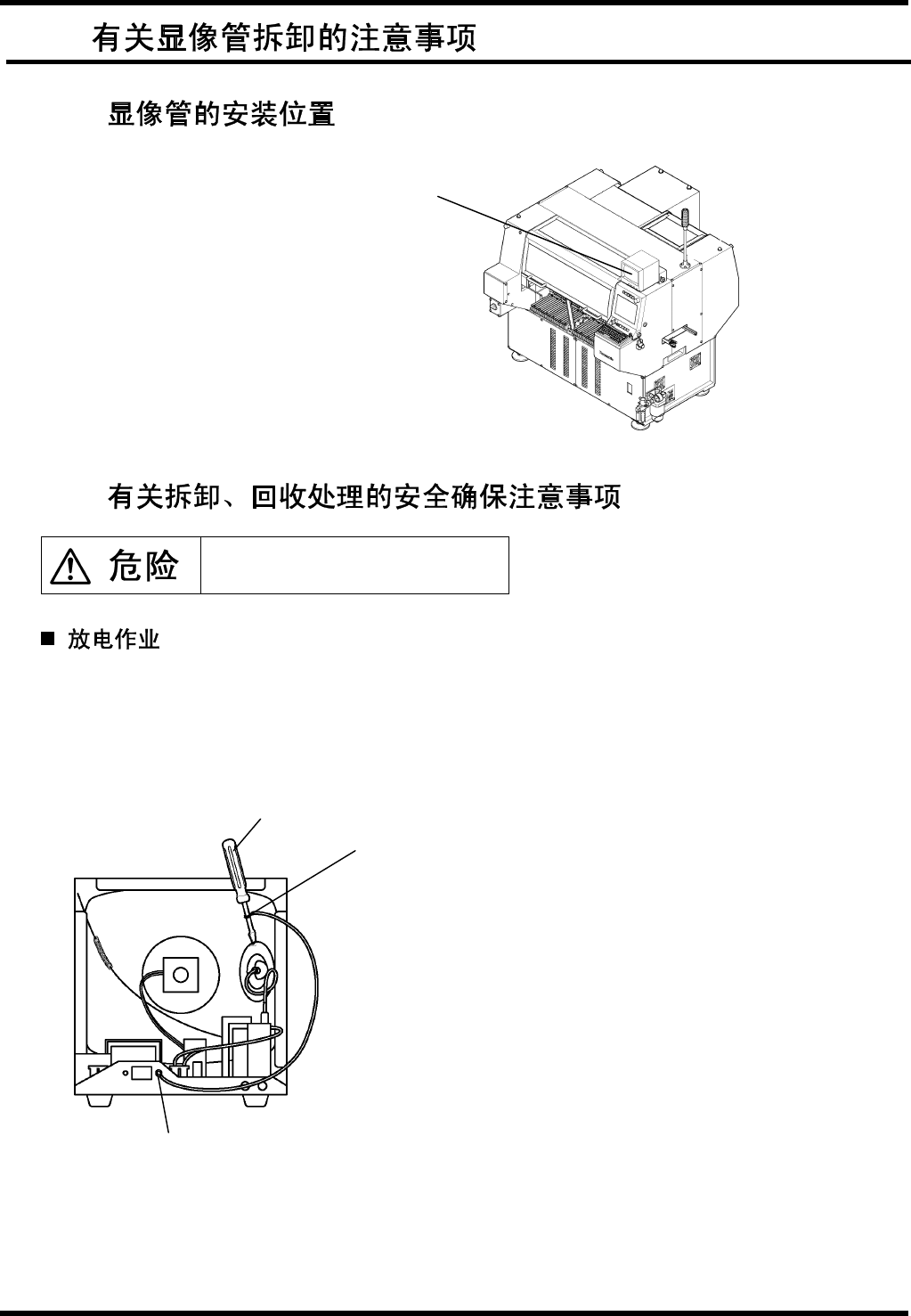显像管内部积压有高压电。请务必进行以下放电作业。