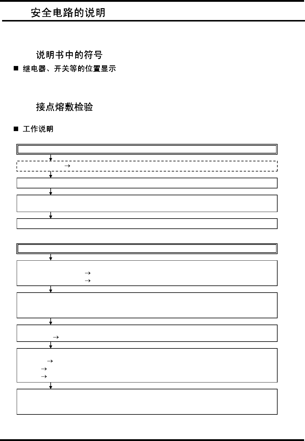 BM221 维修手 册 2.7 安全电 路的 说明 E33M CC-10- 061-C 0 2.7-1 2.7. E33MCC-10-061 -C0 在本节 中对 使安全功 能运 转的电路 进行 了说明。 请结合 另附 的安全电 路图 ( M3 0862-0 0-917 )进行 阅读 。 2.7.1 说明书 中的 继电器、 开关 在安全电 路图 上用[ - ]表示 其位 置。 Ex. [ A-1 ]表示 安全 电路图上 的 A 行与 ‘…