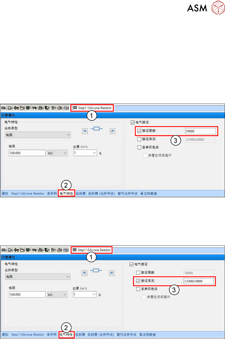 如果选择了用于电气验证的元件,则在每次检测到或潜在的包装更换时,即在设置新的供料器或出