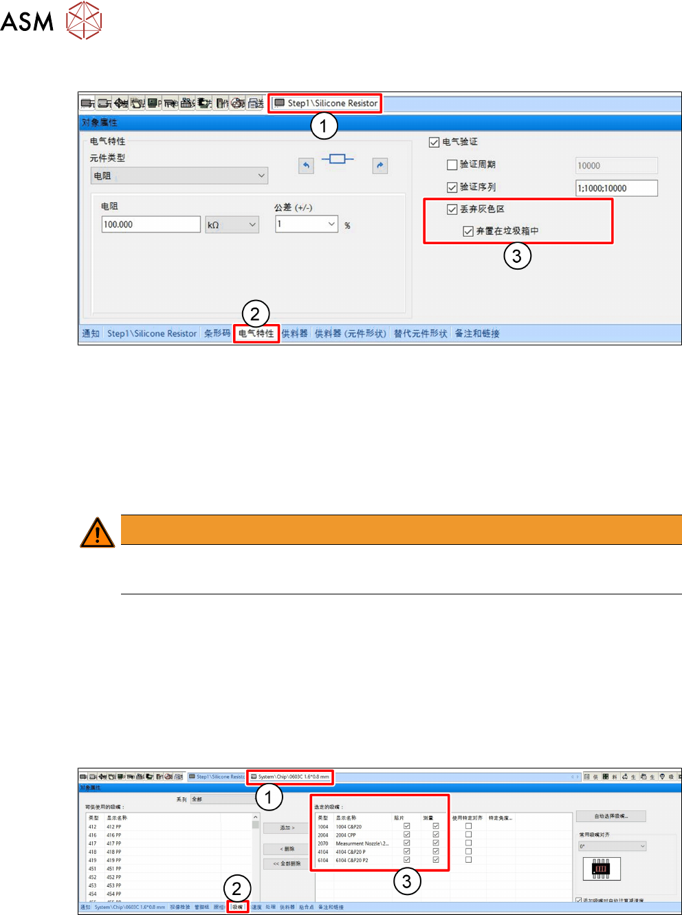 对于每种特定的元件外形,必须选择一个或多个吸嘴来处理该元件外形。如果元件被标记为电气验