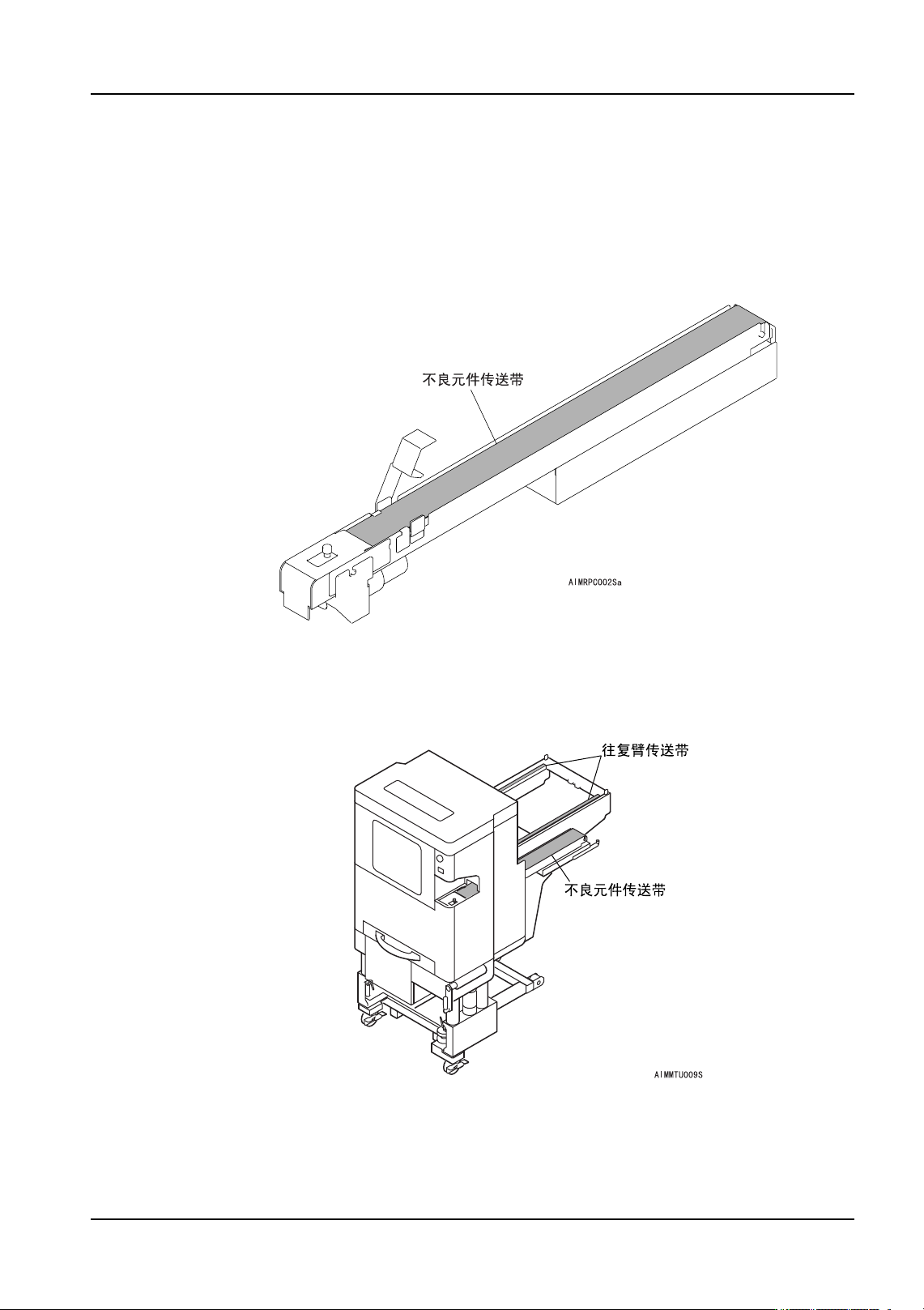 QD053-07 6. 预防保养 AIM 机械手册 101 6.5 每月 (700 小时 ) 的操作 请进行以下的清扫和加油。 6.5.1 不良元件排出单元的清扫 1. 拆除不良元件排出单元。( 详细请 参考 " 8.3 不良元件排出单元的更换 " 。) 2. 用干净的布干擦传送带的表面。 6.5.2 料盘单元 -L 的清扫 (元件排出传送带,往复臂传送带) 1. 拆 除料盘单元 -L。 (详 细请参考 "…