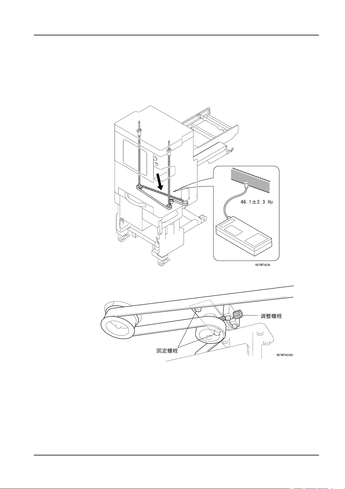 1. 请测定皮带的张力。确认在跨距最长的皮带中央的测定值是 38.8 ± 1.9Hz。