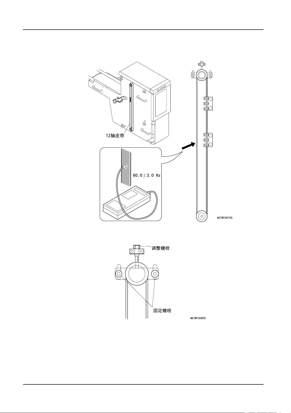 1. 请测定皮带的张力。确认在跨距最长的皮带中央的测定值是 60.0 ± 3.0Hz。