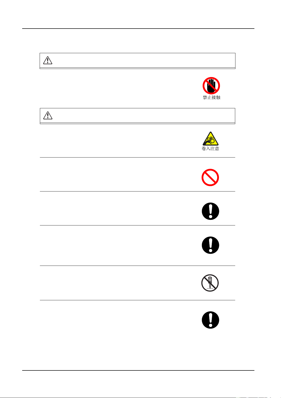 具体的警告内容表示在标记内部。( 左图的示例表示禁止接触。)