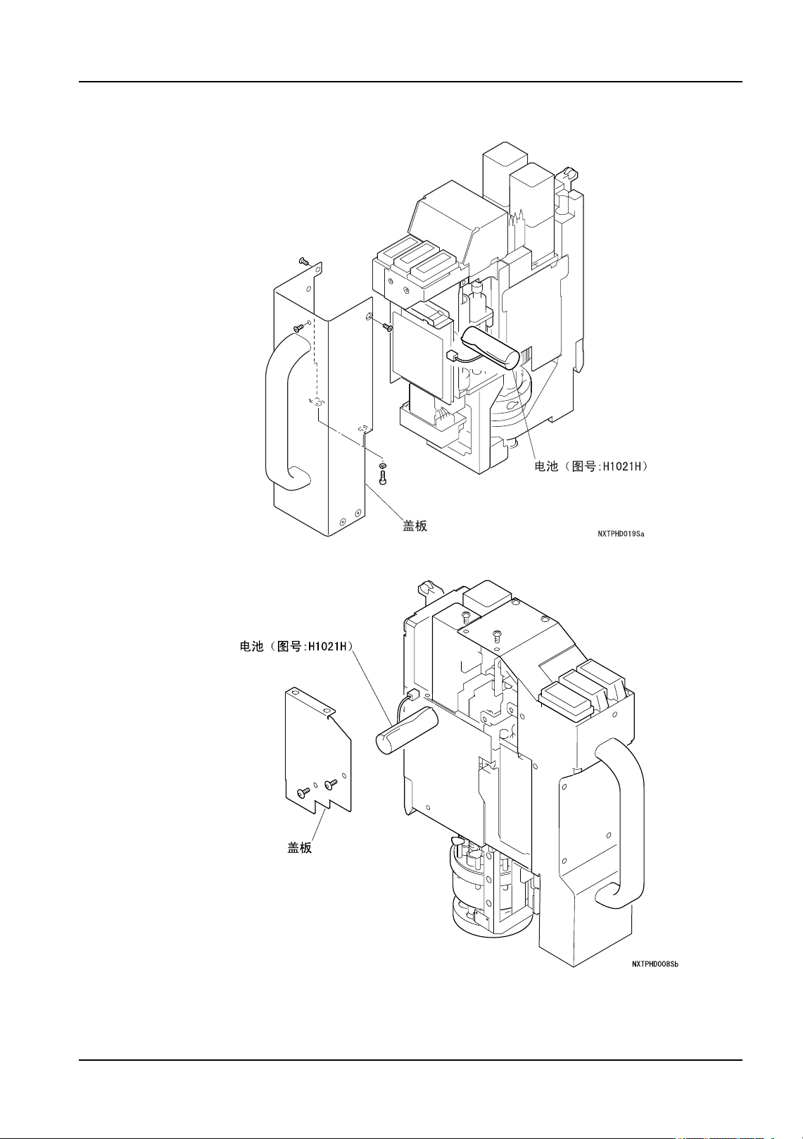 2. 拆下贴装工作头的电池盖板 (参考下图),在此,请不要拆除电池。