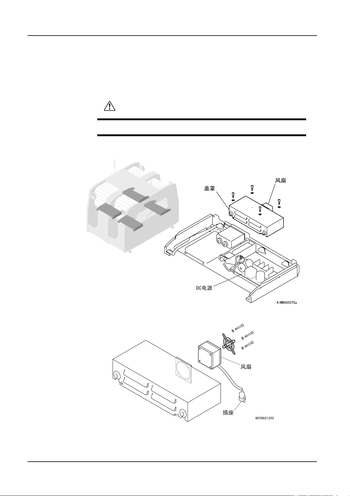 更换用于料站基座 DC 电源的风扇时, 请预先拆下料站托架。(详细请参考 " 5.1 料站托架
