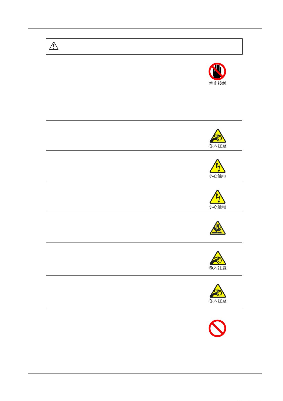 1. 安全指南 QD053-07 4 AIM 机械手册 在拆除零部件时,请佩戴保护眼镜 。 · 在拆除或者更换零部件时,请佩戴 保护眼镜。 在单动操作中,请一边查看监视器 和工作轴一边进行操作。 · 在进行单动操作时 ,请一边确认监 视器的显示一边进行按钮 的 操作。 · 绝对禁止不查看监视器的显示 内容而进行试探性的操 作 。 这将 导致错误操作,并有可能损坏机器 及产品。 关闭电源后,至少在 5 分钟 之内不要接触伺服放大器的电源端…