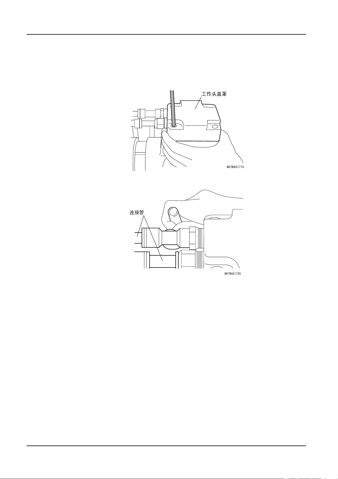 a. 将工作头盖罩的接头插入到管内,把外壳的螺丝孔与工作头盖罩的孔对齐。