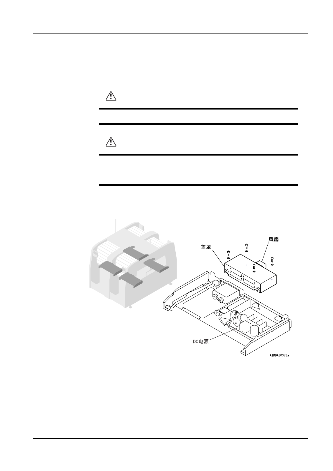8. 部件的更换 QD053-07 226 AIM 机械手册 3. 取下连接在 DC 电源上的插座 。 4. 拆下螺丝 (4 根 ),从料 站基座上拆除 DC 电源并 更换。