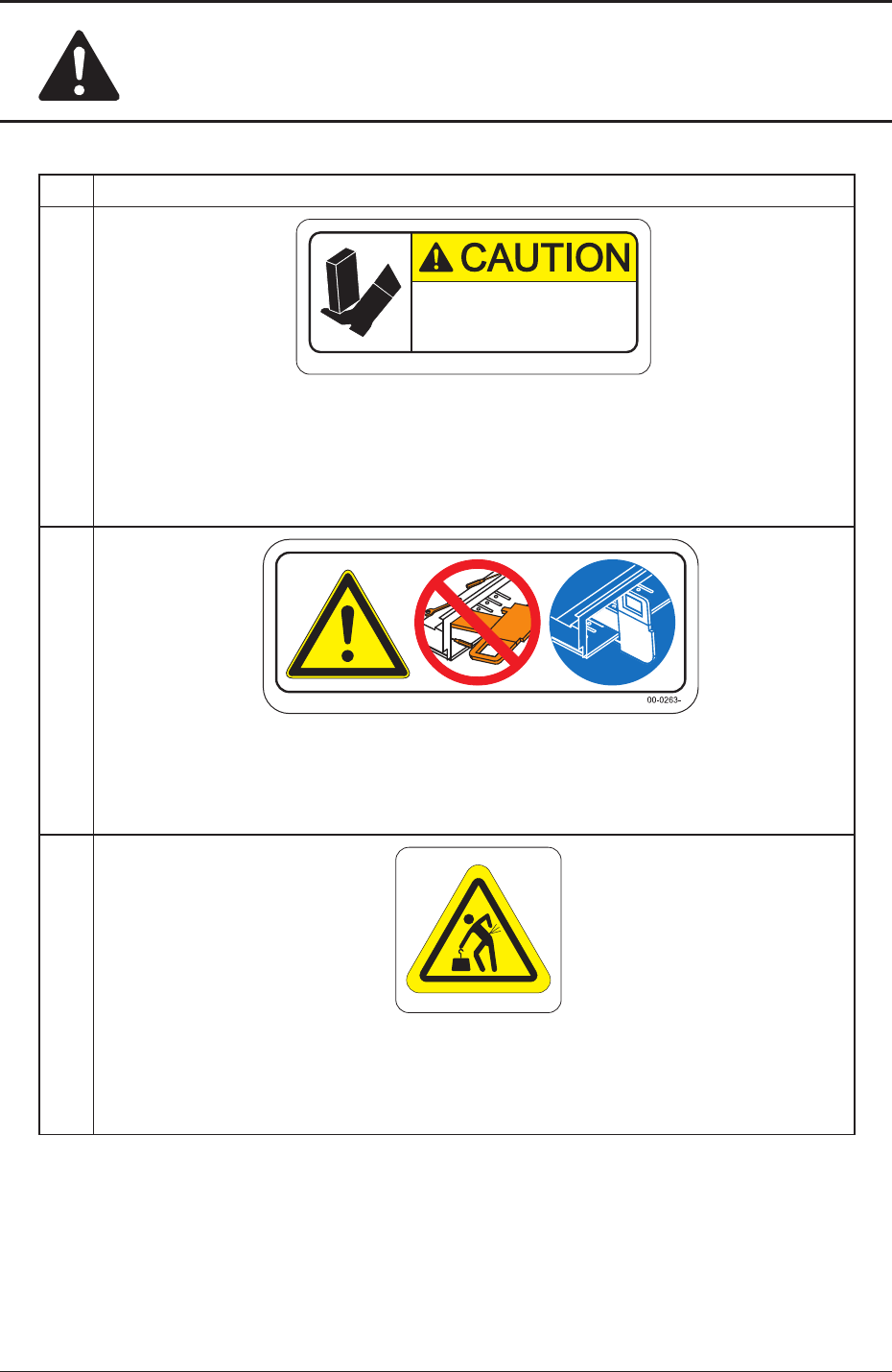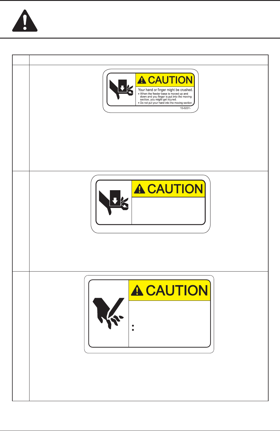 Safe-18 Safety Precautions 7OM-1603 No. Alert Labels and Description (13) 10-0278- Avoid dropping a cutter! It is heavy and if dropped, an injury will result. Remove or attach the cutter unit with the handle securely hel…