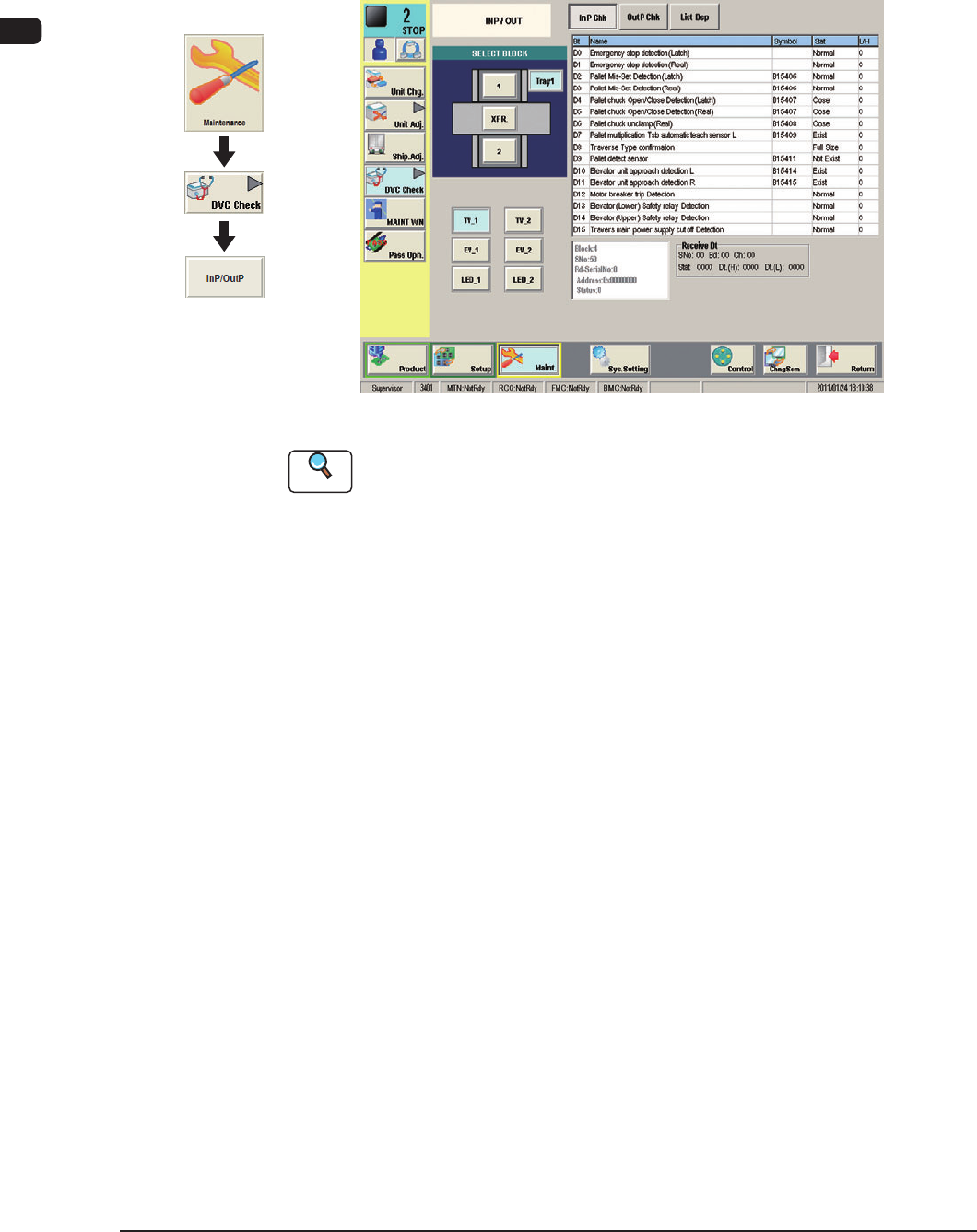 This window enables the operator to check the I/O status in each section.
