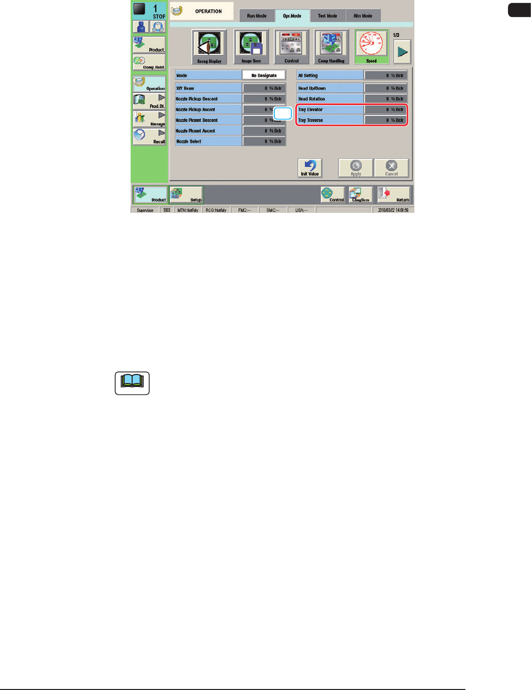 For the tray elevator or tray traverse operation speed reduction designation, the