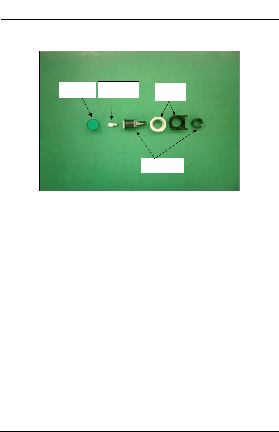 Rev1.00 维修调整要领书 13-43 2 )开关的组装 透镜 绿·红·黄 开关调节器 监视窗 保护罩无·有 +24V LED 绿·橙 (1) ONLINE 、 ORIGIN 、 START 、 STOP 、 SERVOFREE 、 CYCLE • 对象部件 泛光镜头( HA005520010 , HA00552001A , HA00552001B ) LED ( HA005340070 , HA00534007A ) 监视窗( H…